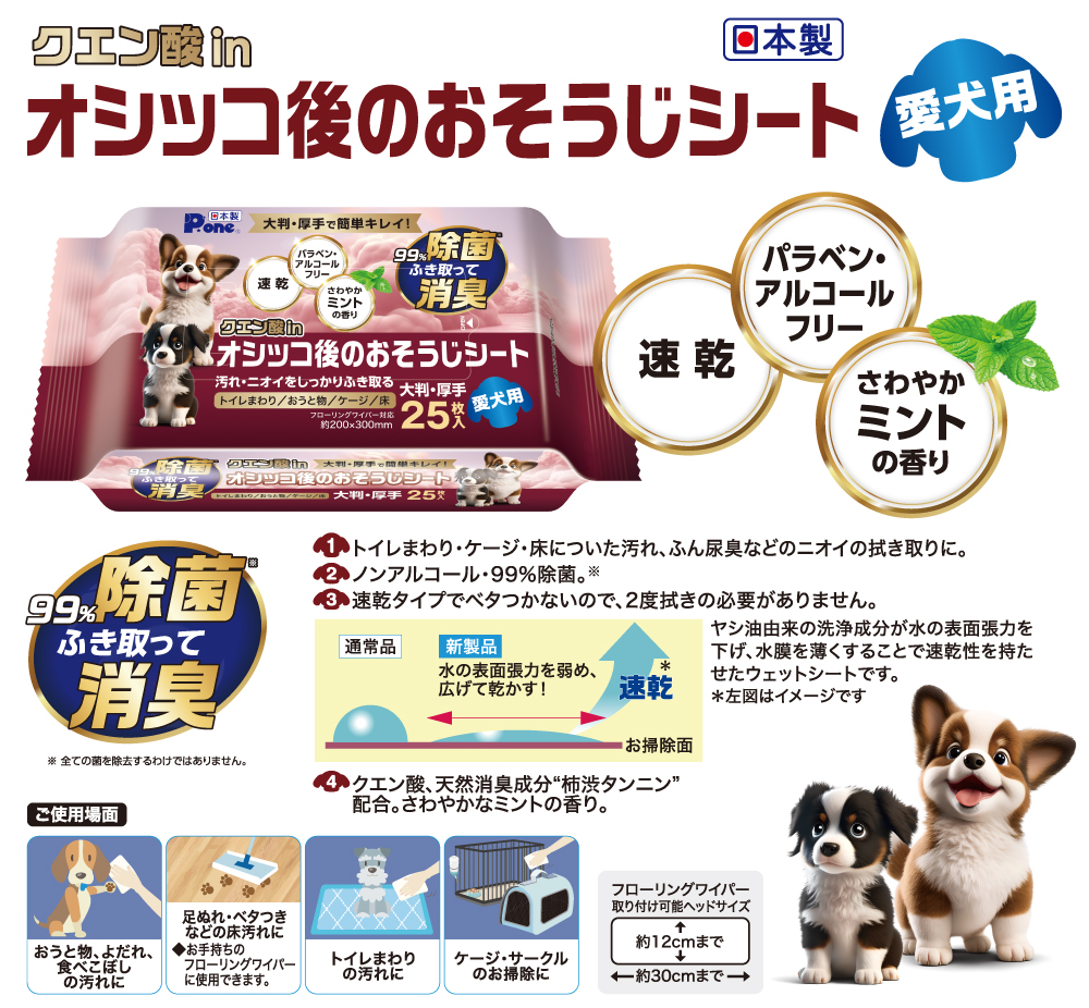 | 商品名 | クエン酸inオシッコ後のおそうじシート愛犬用 25枚入 |